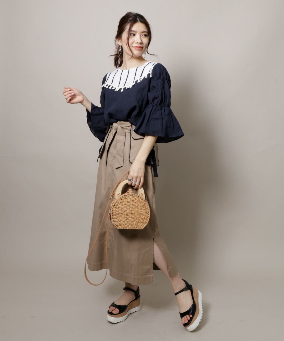 ★タッセル付バックツイストブラウス