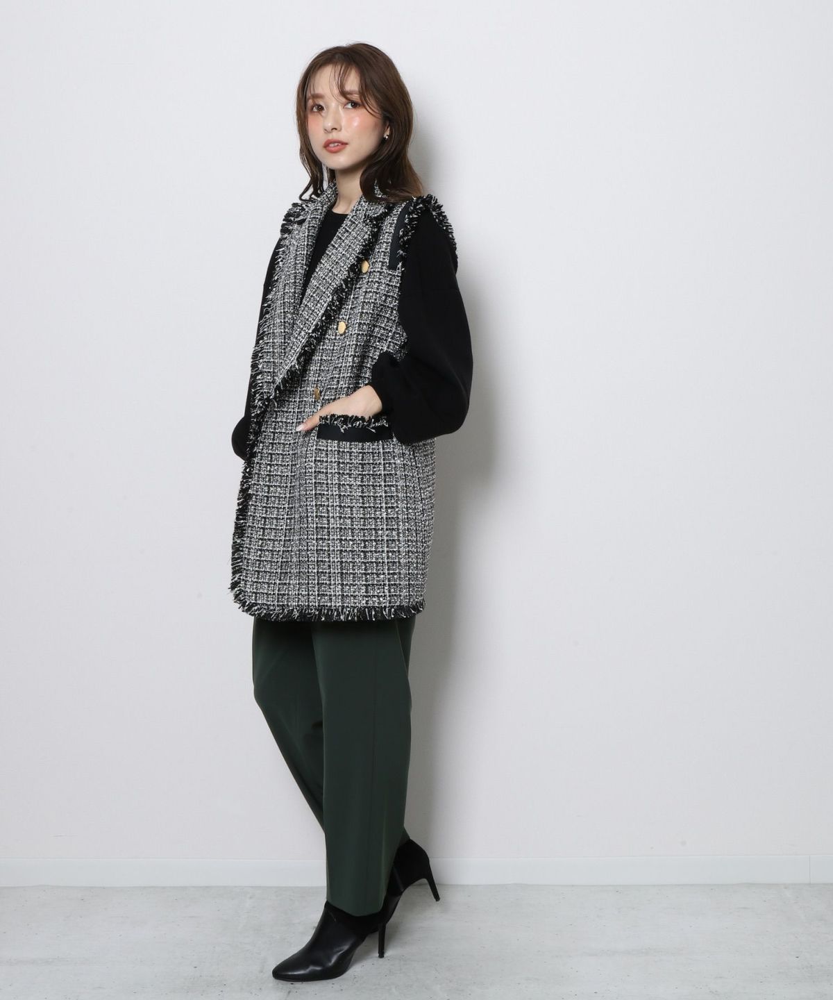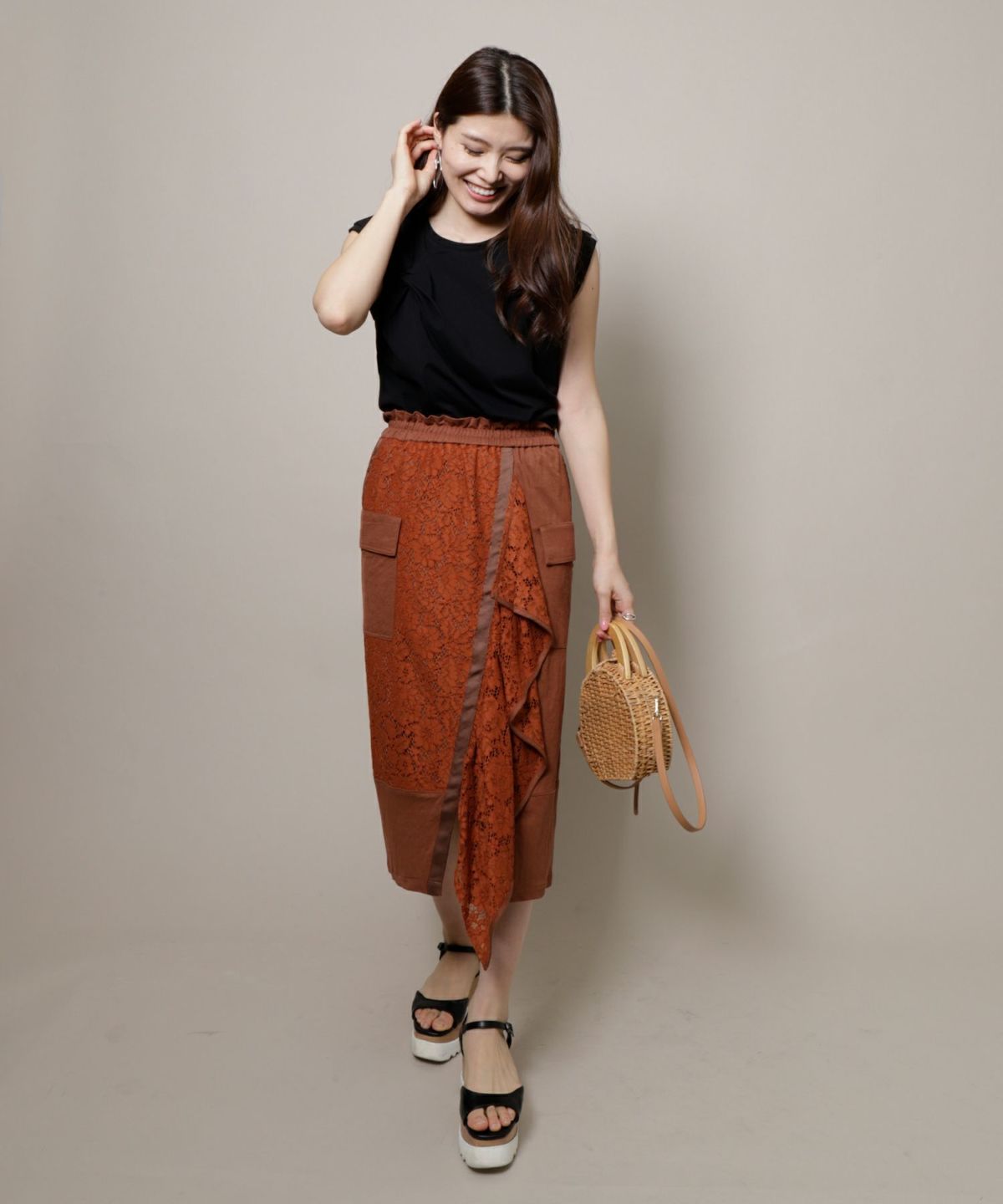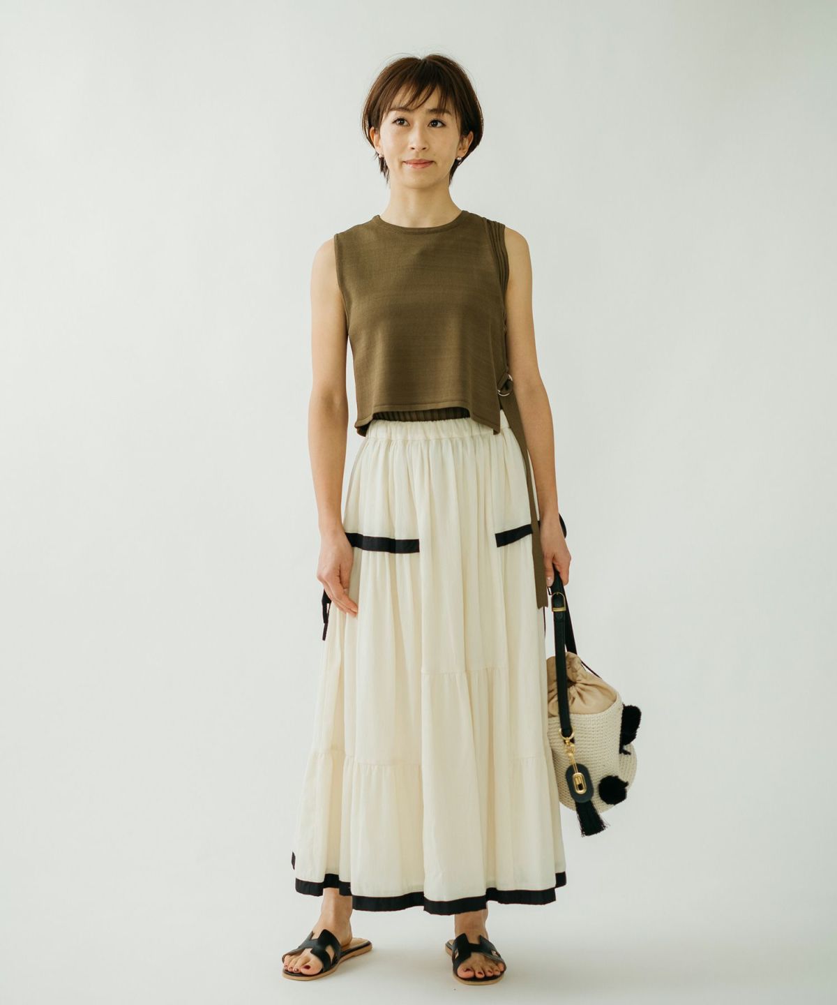 ★ハイウエストツイード切替スカート