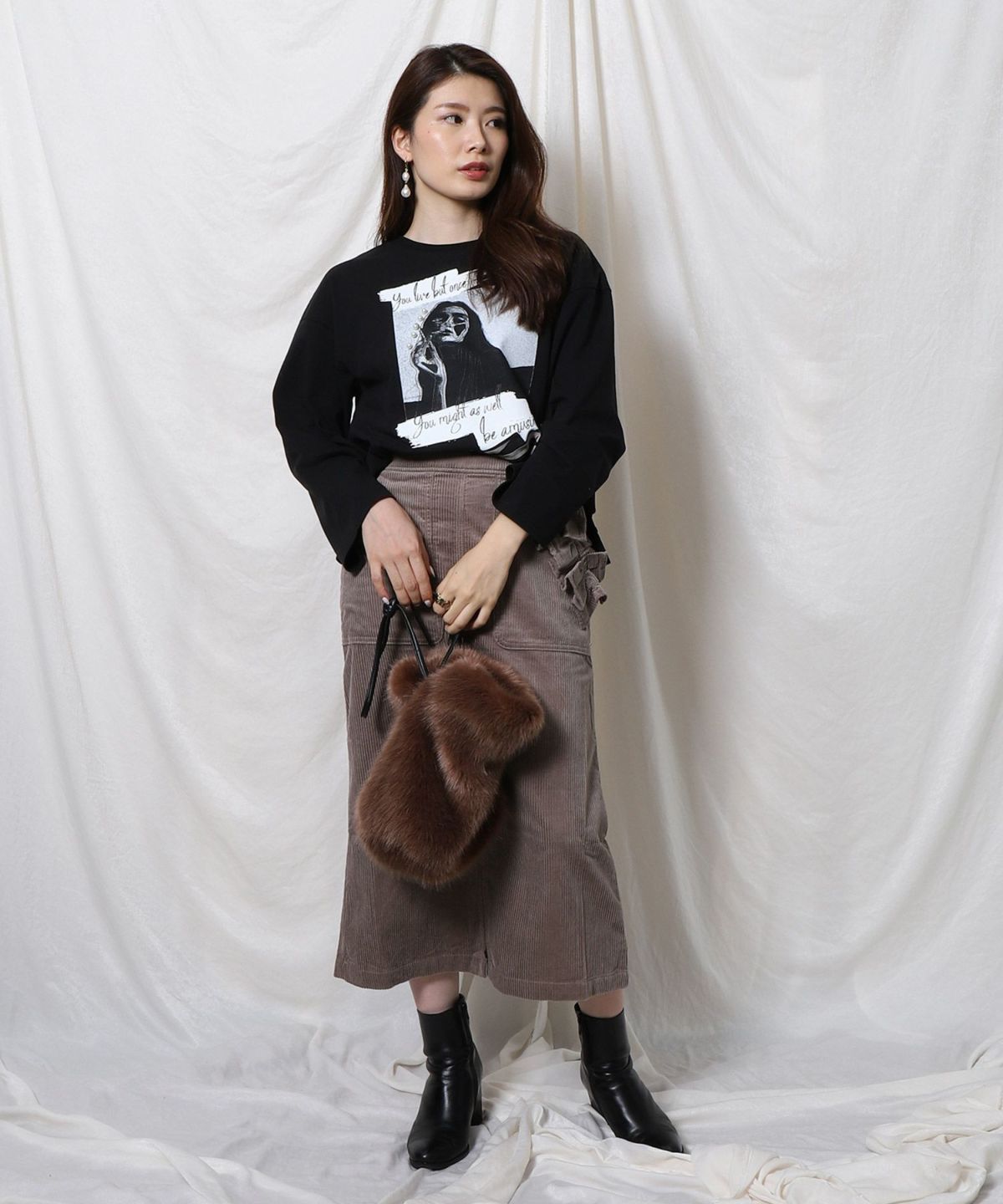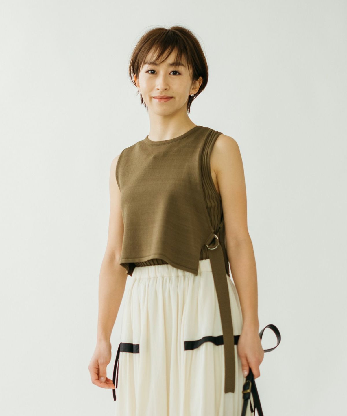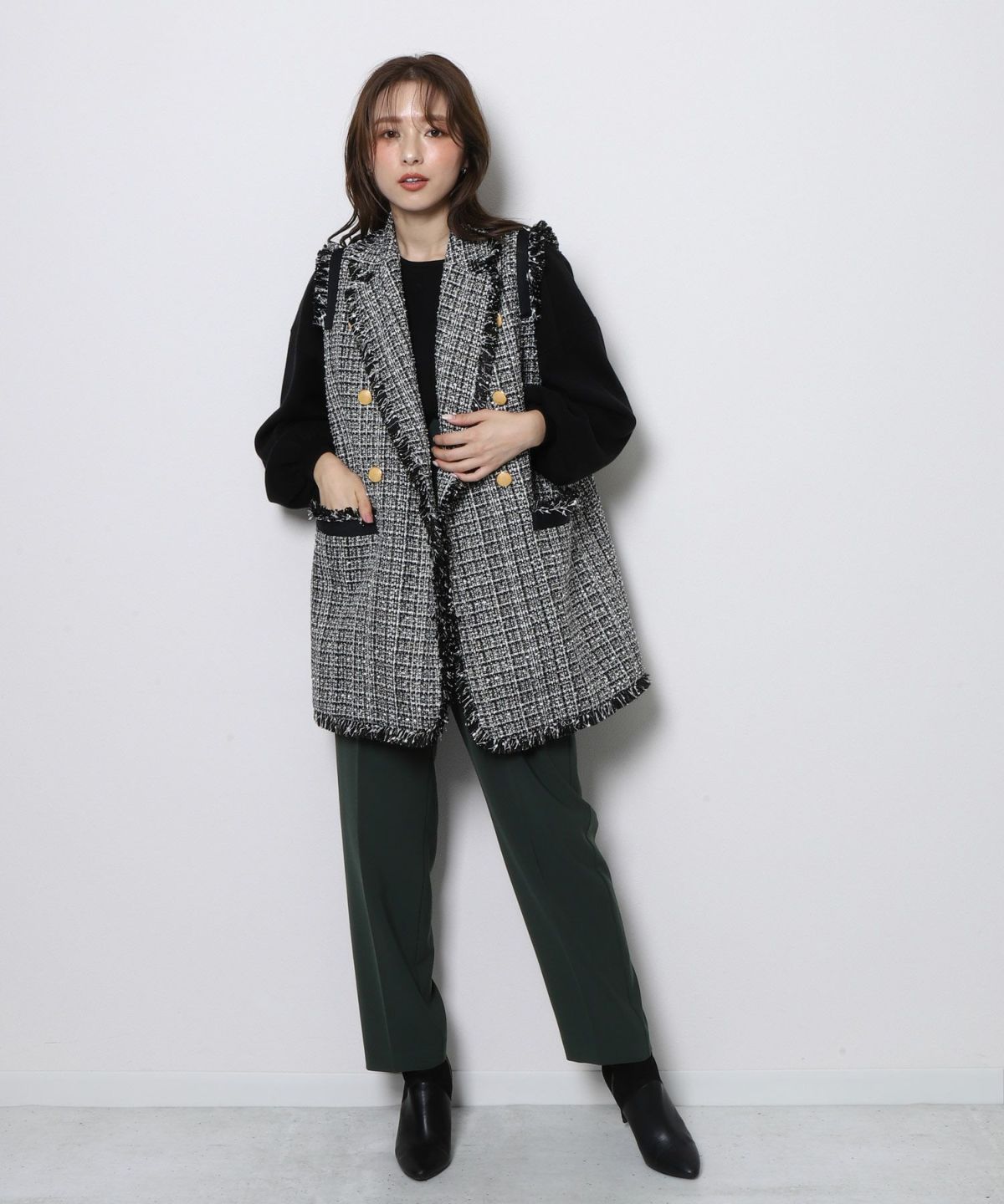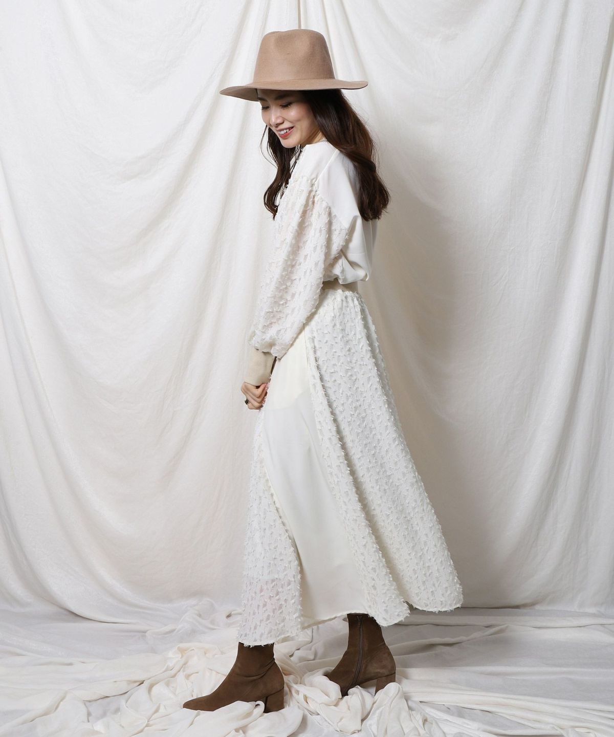 ★ハイウエストツイード切替スカート