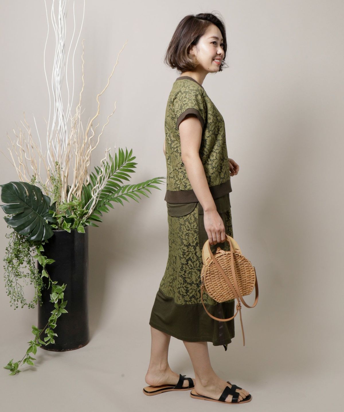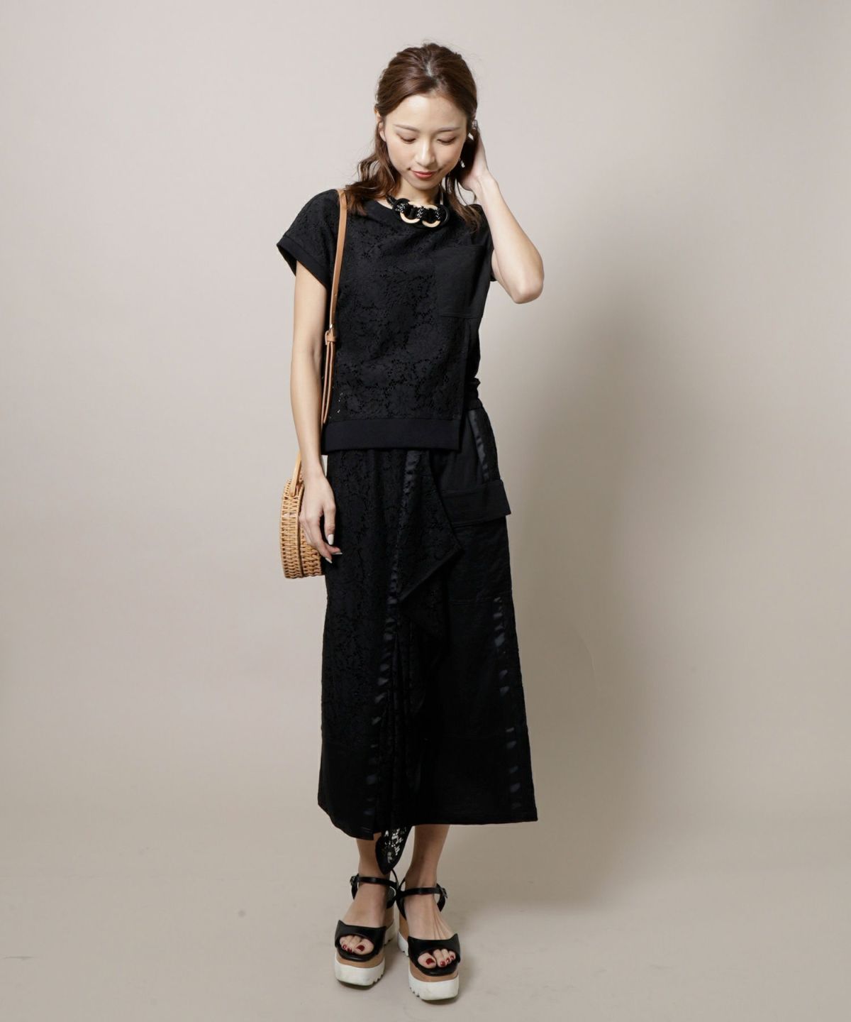 ★楊柳シフォンレース切替ティアードワンピース