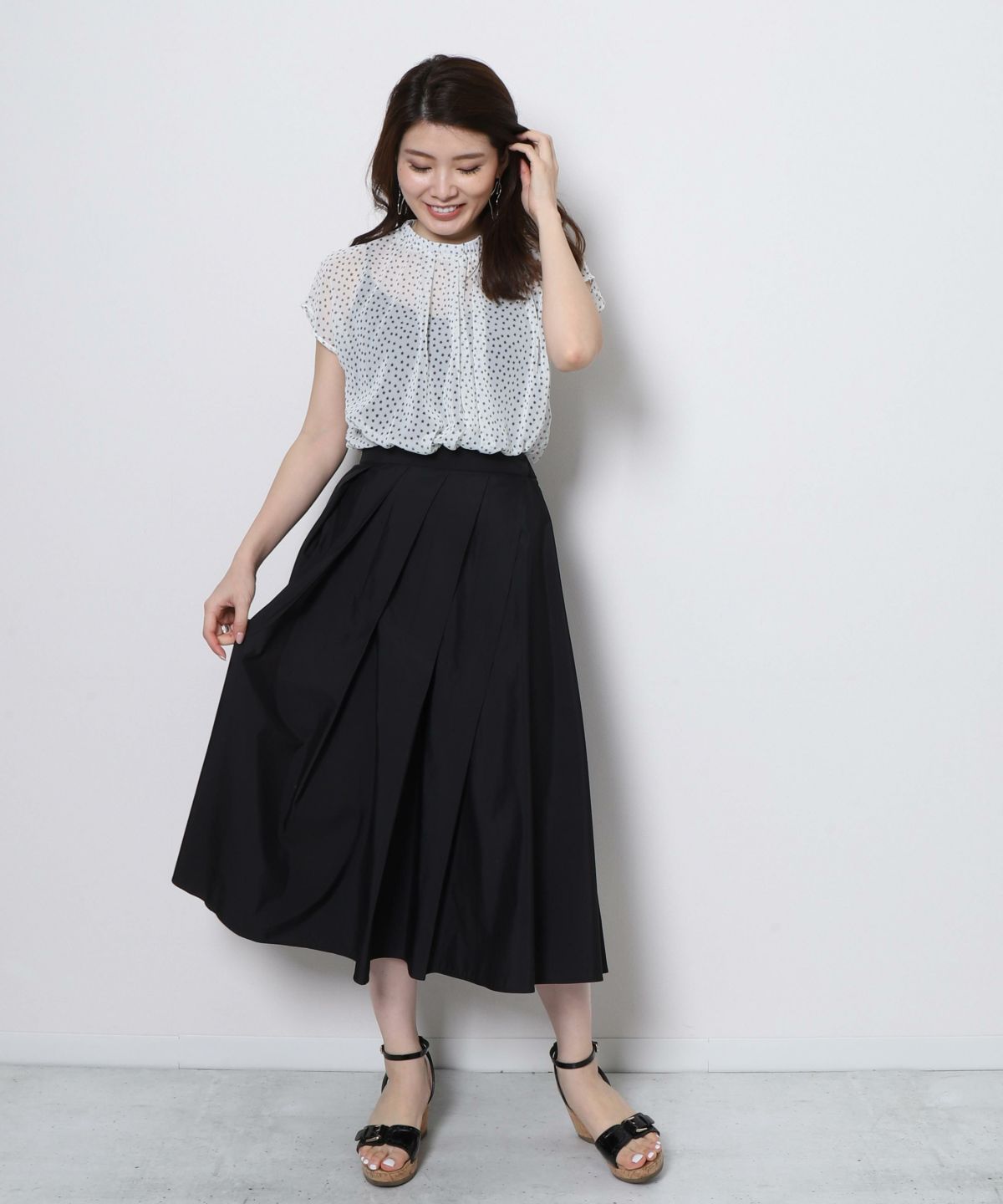 ★レース切替ボックスプリーツスカート