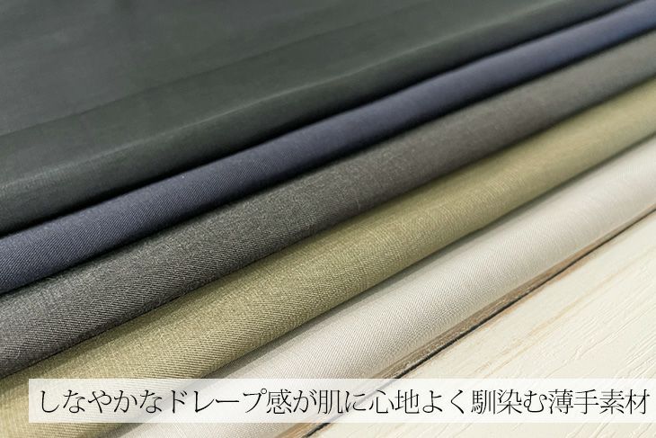 ドレープ感が肌に心地よく馴染む薄手のツイル素材。