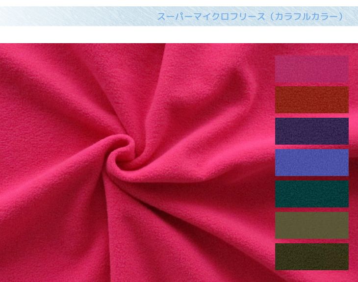 上質なマイクロファイバーを使用した、なめらかな風合いの中肉厚(やや薄手)フリース。