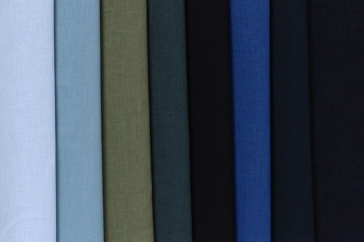 ●20s綿麻シーチング(緑・青・黒系) 布 生地 手作り カット50cm単位