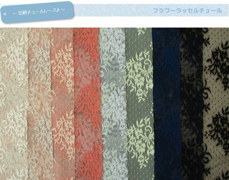 ●フラワーラッセルチュール 布 生地 手作り50cm単位