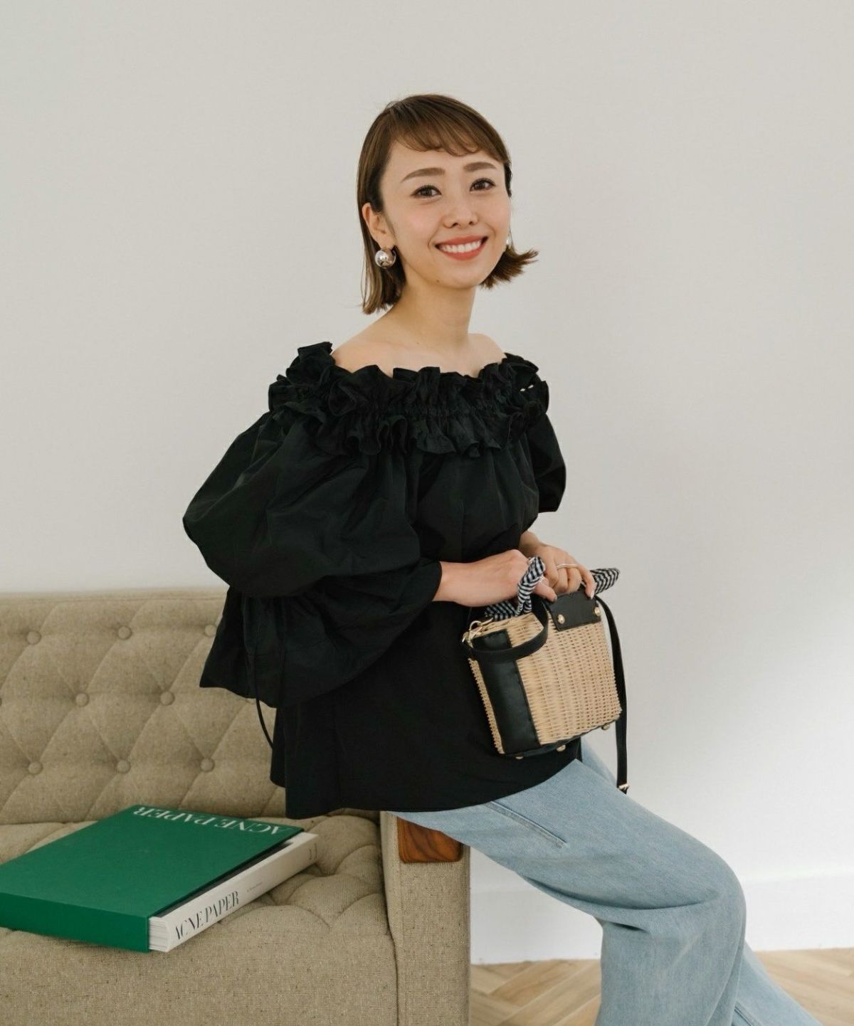 ◆シアーショルダーペプラムブラウス