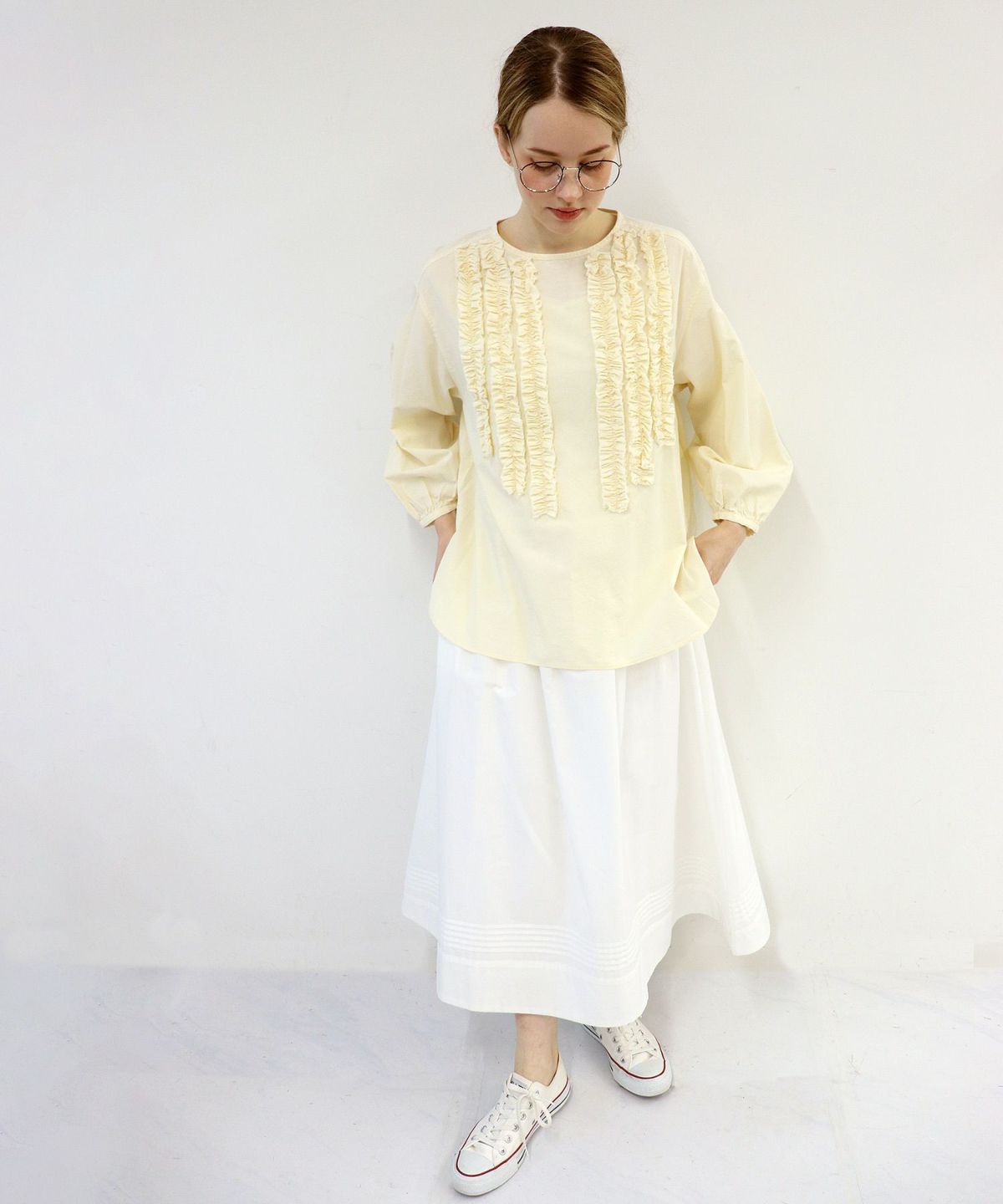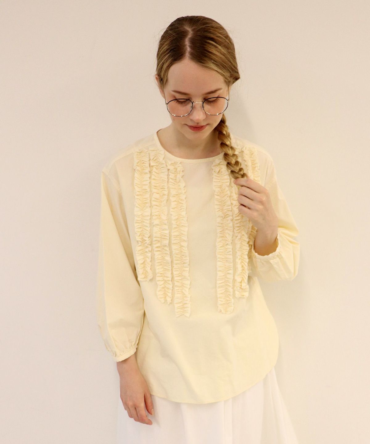 アキロンコラボギャザーフリルブラウス